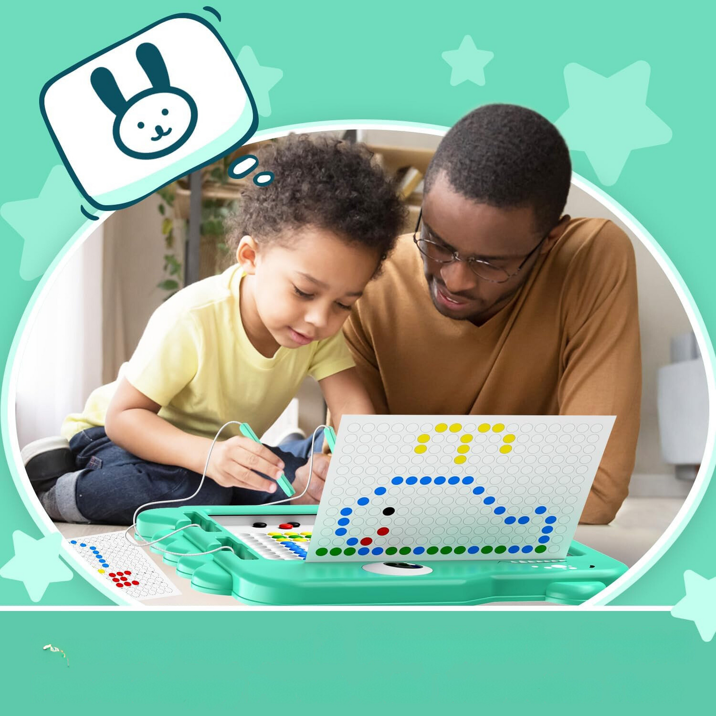 Dieses Zeichenbrett ist aus sicheren, langlebigen Materialien gefertigt und eignet sich ideal für junge Lernende. Sein interaktives Design macht das Lernen zu Hause oder unterwegs zum Vergnügen. Ein großartiges Werkzeug für die Früherziehung und endloses fantasievolles Spiel.