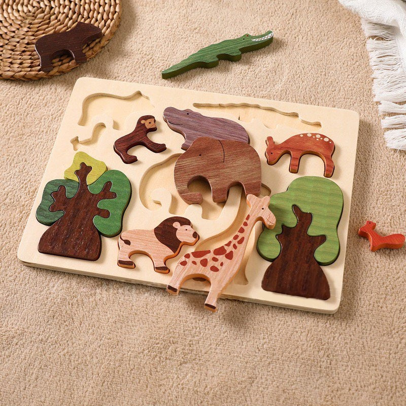 Führen Sie Ihr Baby in die Welt des Lernens ein - mit dem 3D-Tierpuzzle aus Holz, einem von Montessori inspirierten Spielzeug, das die frühe Entwicklung anregt und fördert. Dieses Lernspielzeug hilft Neugeborenen, ihre Hand- und Fußkoordination zu verbessern, während sie verschiedene Tierformen und -strukturen kennenlernen.