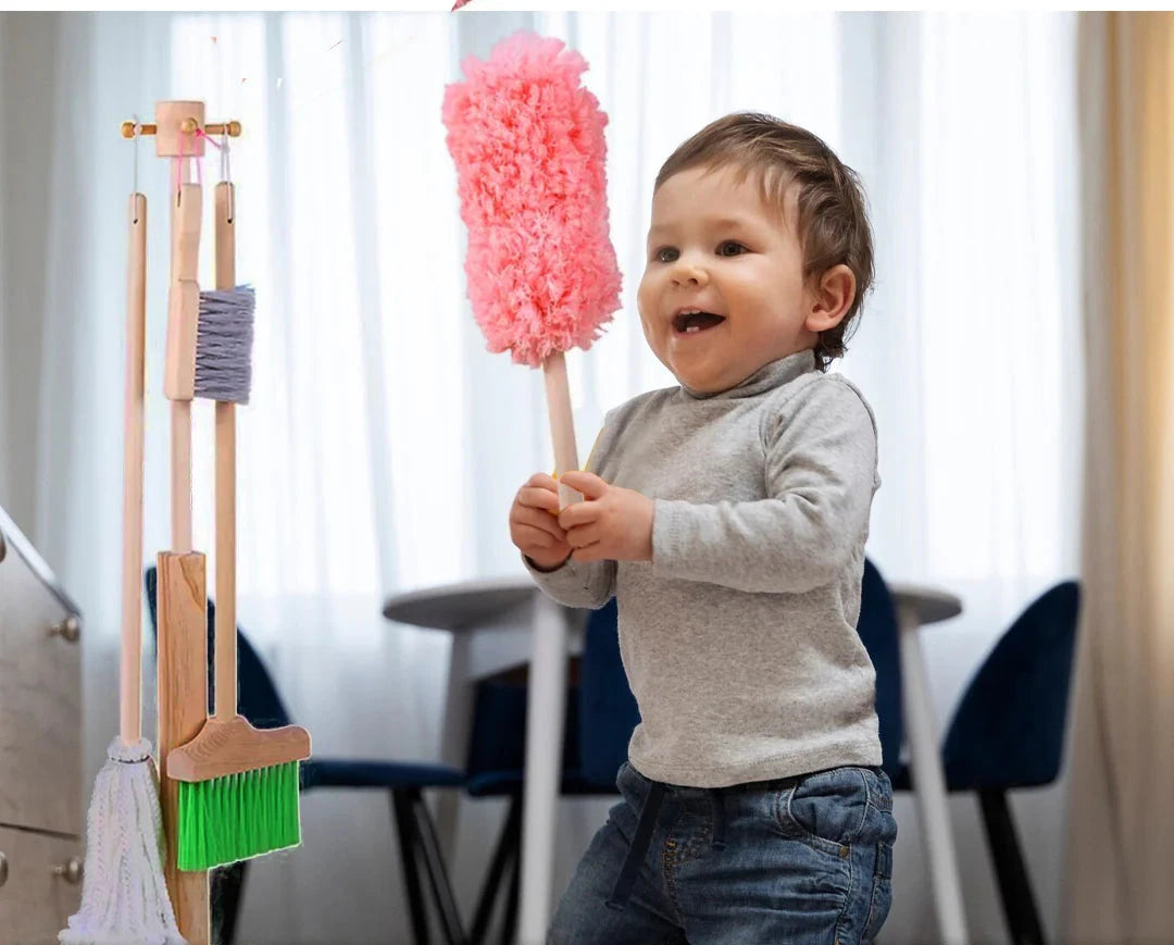 Das 7-teilige Reinigungsset aus Holz ist das perfekte Lernspielzeug, um Kinder zu motivieren, Sauberkeit und Verantwortung zu lernen. Mit den kindgerechten Reinigungswerkzeugen fördert dieses Set die Feinmotorik und regt gleichzeitig zum fantasievollen Spielen an. Es ist ein hervorragendes Geschenk für Kinder, mit dem Hausarbeit Spaß macht und motiviert.