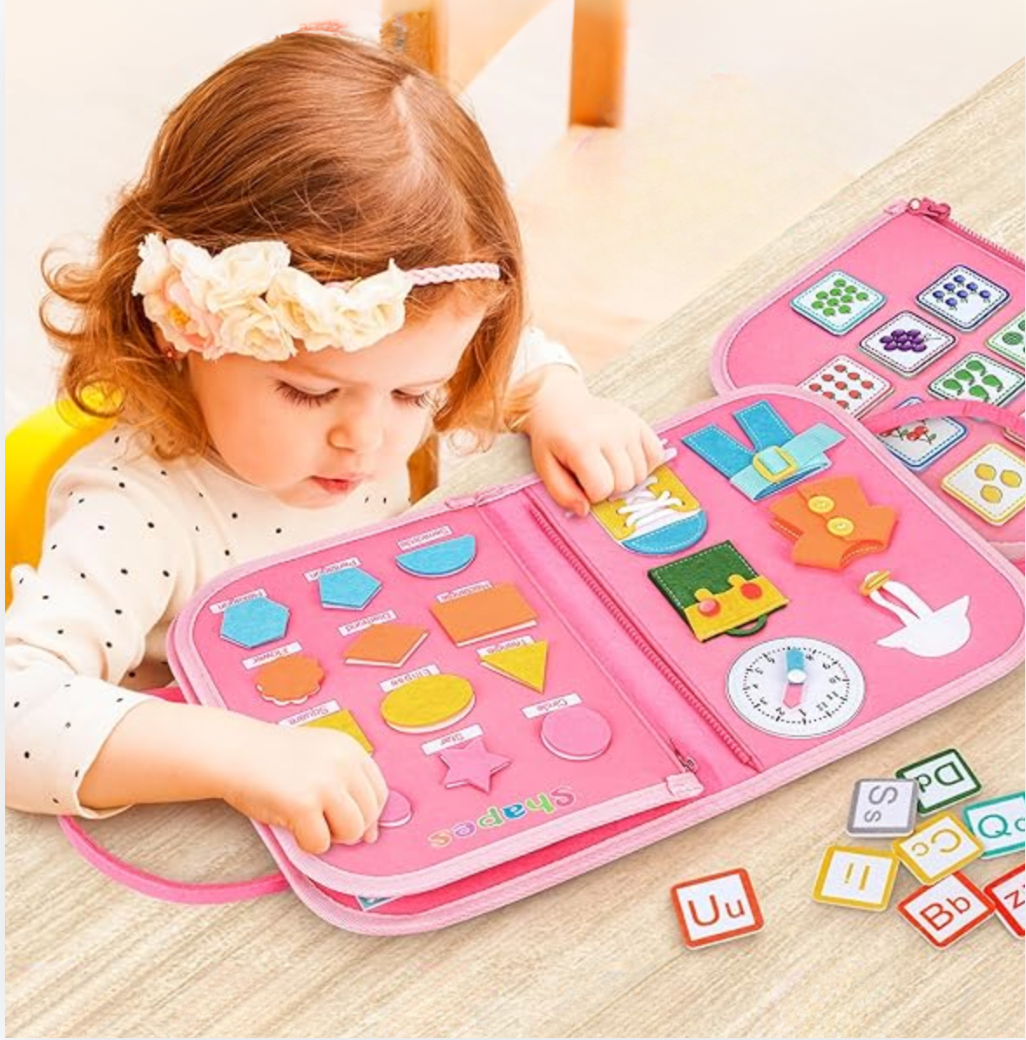 Dieses Beschäftigungsbuch für Kinder ist ein grossartiges Sinnesspielzeug. Es simuliert wichtige Alltagssituationen und hilft Kindern dabei, grundlegende Lebenskompetenzen zu erlernen. Zudem fördert es die Problemlösungsfähigkeiten, die Feinmotorik, die Hand-Augen-Koordination und grundlegende Fertigkeiten für den Alltag.