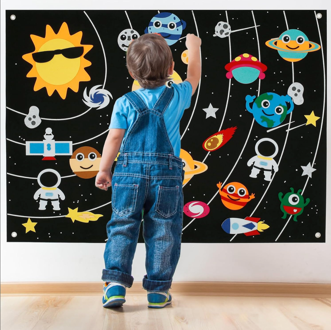 Das Filz Wandboard wurde entwickelt, um Kindern auf spielerische und interaktive Weise etwas über Tiere, Umwelt und Transportmittel beizubringen, und eignet sich perfekt für thematisches Lernen und Rollenspiele. Sein kompaktes, an der Wand hängendes Design macht es zu einem ausgezeichneten Geschenk für kleine Räume und bietet eine farbenfrohe Alternative zu traditionellem Lernspielzeug.