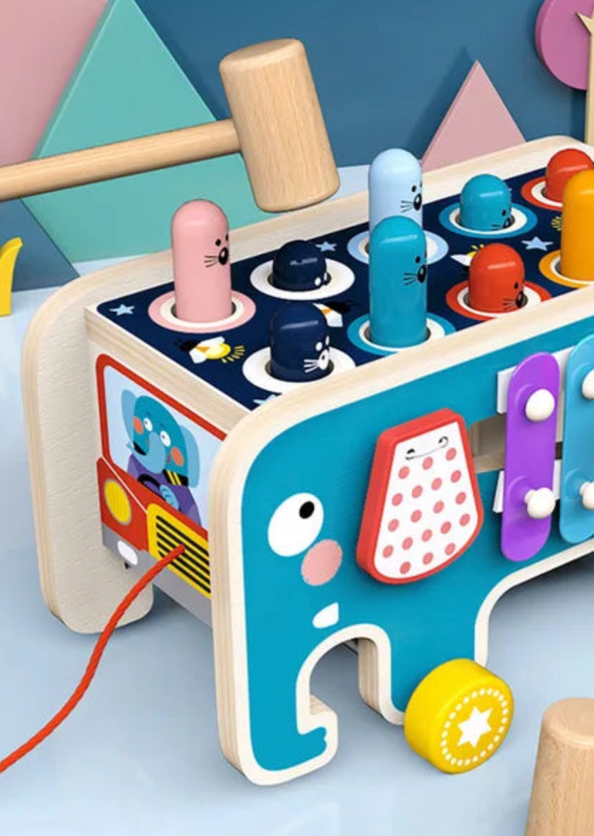 Der HammerElefant ist ein lustiges und lehrreiches Spielzeug, das die motorischen Fähigkeiten und die kognitive Entwicklung von Kindern fördert. Mit einem bunten Elefantendesign und einem kindgerechten Hammer verbessert es die Hand-Augen-Koordination und lehrt Ursache und Wirkung durch wiederholtes Hämmern. Hergestellt aus langlebigen, ungiftigen und umweltfreundlichen Materialien, sorgt es für sicheres und nachhaltiges Spielen.