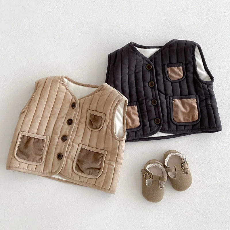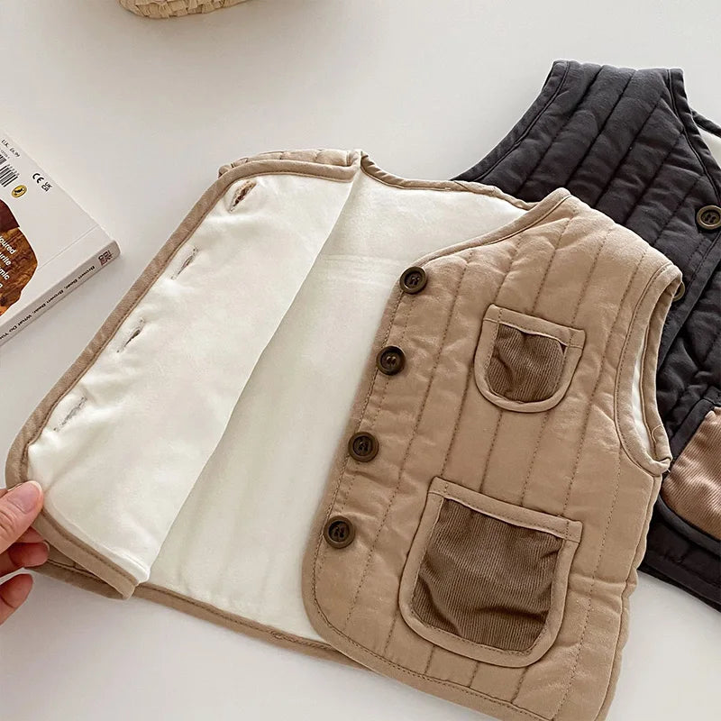 Halte deine Kleinen warm und stilvoll mit unseren Herbst Winter Fleece Babywesten. Diese ärmellosen Kinderwesten sind perfekt für aktive Jungen und Mädchen in den kalten Monaten und bieten Wärme und Komfort. Mit weichem Fleecefutter sorgen die Babywesten für hervorragende Isolierung, ohne die Bewegungsfreiheit einzuschränken, und eignen sich ideal zum Layern. Ob für alltägliche Ausflüge oder zum Spielen im Freien, unsere Fleece Babywesten kombinieren Funktionalität und Stil.