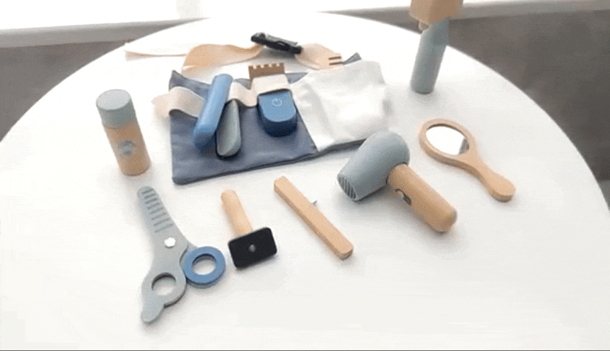 Dieses lustige und interaktive Schönheitssalon-Spielset aus Holz ist perfekt für Kinder, die gerne Rollenspiele spielen und sich verstellen. Das Set enthält eine Vielzahl von Salonwerkzeugen wie Kämme, einen Haartrockner, Make-up-Accessoires und mehr, so dass die Kleinen zu professionellen Friseuren und Make-up-Künstlern werden können. Dieses Set aus haltbarem, ungiftigem Holz ist sicher für Kinder und hält stundenlanges, fantasievolles Spielen aus.
