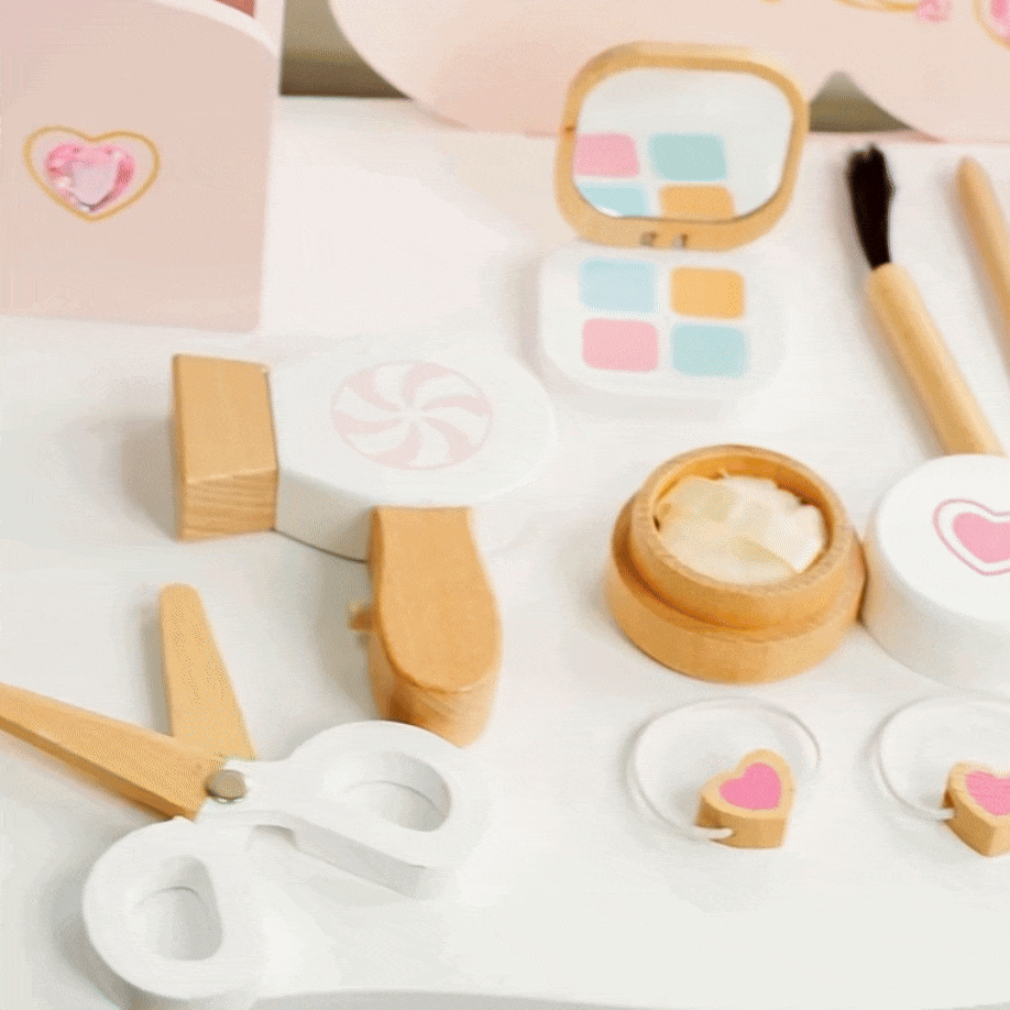 Dieses hölzerne Schminkset für Kleinkinder ist das perfekte Spielset für junge Stylisten und Make-up-Liebhaber. Dieses Schönheitssalon-Spielset wurde aus sicheren, kinderfreundlichen Materialien hergestellt und enthält alles, was für kreativen, fantasievollen Spielspass nötig ist.