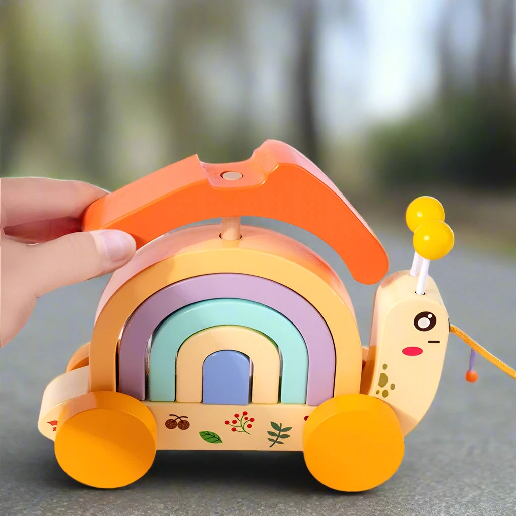 Holzschnecke Ziehspielzeug mit Klötzen
