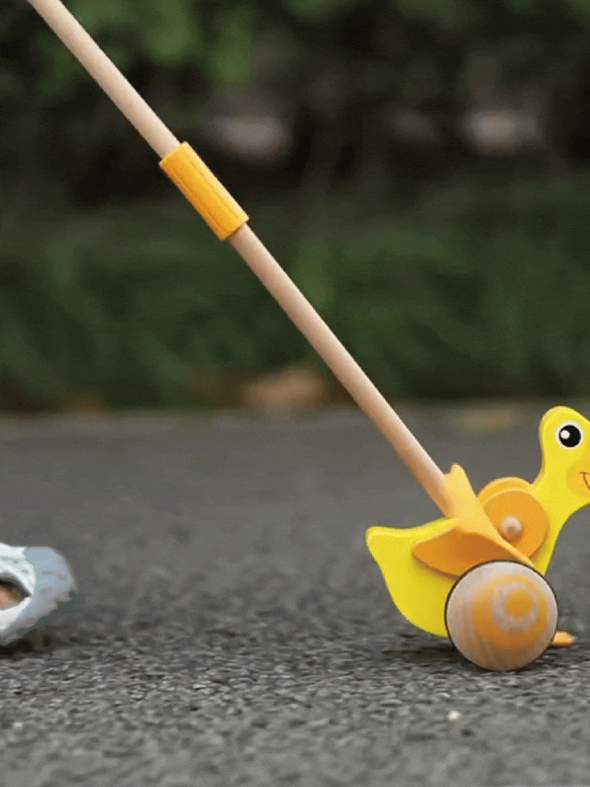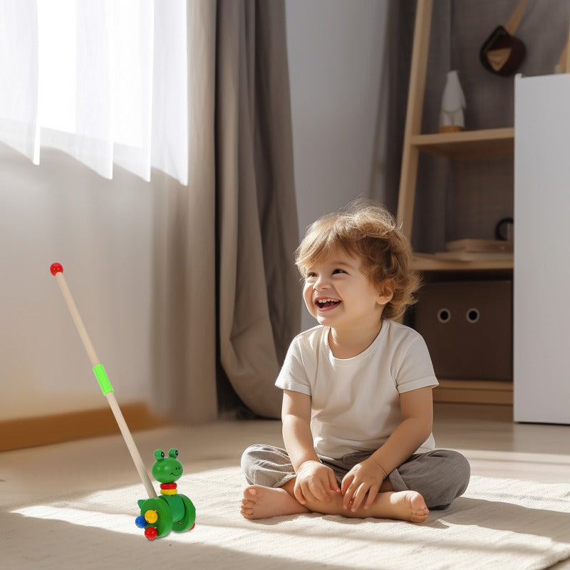 Der leicht zu greifende Griff macht es Kleinkindern leicht, ihn zu schieben, während die robuste Konstruktion eine lange Nutzungsdauer gewährleistet. Dieses Schiebespielzeug fördert die motorischen Fähigkeiten, die Koordination und die Kraft, was es zu einer unverzichtbaren Ergänzung für die Lernreise eines jeden Kleinkindes macht.