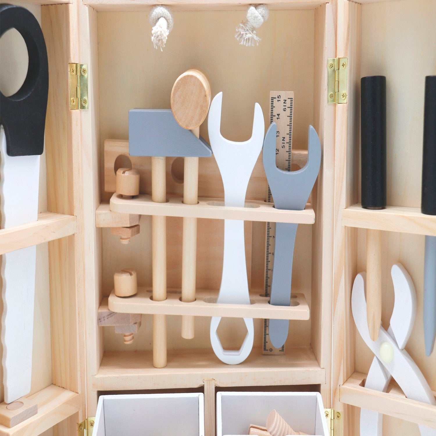 Das kreative Holz-Werkzeugset ist das perfekte Lehrspielzeug für kleine Baumeister und Handwerker. Mit einer Vielzahl von Werkzeugen und Zubehörteilen regt es die Fantasie der Kinder an und fördert kreatives Spielen. Ob beim Reparieren von Spielzeug oder beim Bauen von eigenen Projekten – die Kinder können sich in verschiedenen Rollen ausprobieren und ihre motorischen Fähigkeiten spielerisch entwickeln.