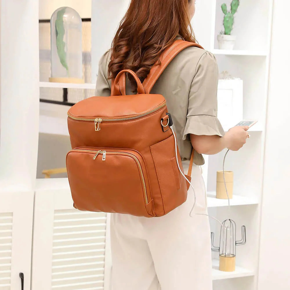 Der Leder-Wickelrucksack kombiniert Eleganz und Funktionalität und ist der perfekte Begleiter für moderne Eltern. Mit seinem geräumigen Design bietet der Rucksack ausreichend Platz für alle Baby-Essentials, von Windeln bis hin zu Feuchttüchern und Fläschchen. Dank der cleveren Fächeraufteilung, darunter auch ein separates Fach für nasse Kleidung, bleiben alle Gegenstände ordentlich und leicht zugänglich.