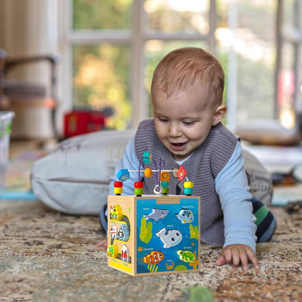 Entdecken Sie mit dem 5-in-1 Holz-Aktivitätswürfel eine Welt voller Lernen und Spaß für Ihre Kleinen! Dieser vielseitige Lernspielzeug ist für Kleinkinder im Alter von 6-12 Monaten konzipiert und bietet eine Vielzahl von spannenden Aktivitäten, die die kognitive Entwicklung und die Feinmotorik fördern.