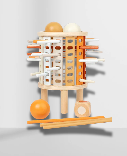 Das Geschicklichkeitsspiel aus Holz bringt Spannung und Spass in jedes Zuhause! Die Spieler müssen abwechselnd Stäbe entfernen, ohne die Kugeln zum Fallen zu bringen – das erfordert Feinmotorik, Konzentration und eine ruhige Hand. Mit einem einfachen Regelwerk ist es perfekt für die ganze Familie, egal ob Kinder oder Erwachsene. Das Spiel fördert nicht nur die motorischen Fähigkeiten, sondern auch den Teamgeist und die Geduld.