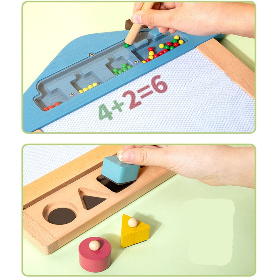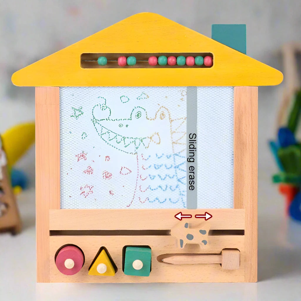 Dieses Zeichenbrett aus langlebigen, kindersicheren Materialien ist ein großartiges Werkzeug für die Früherziehung. Sie unterstützt das Erkennen von Buchstaben und Zahlen sowie die Entwicklung von Problemlösungsfähigkeiten, während Kinder mit Formen und Mustern experimentieren.