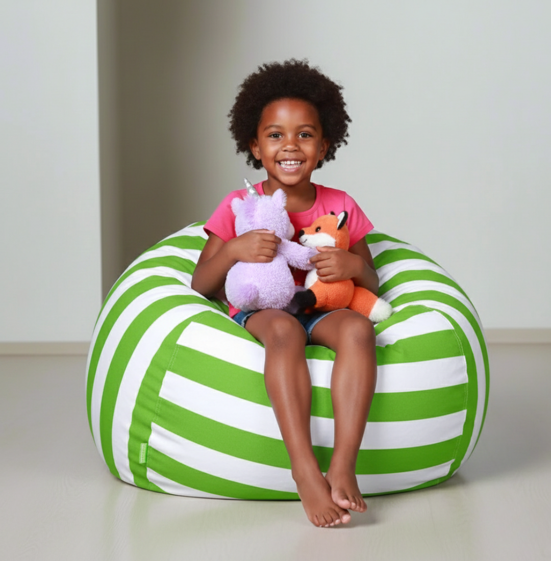 Eltern lieben es, dass der Stuff 'n Sit die Kinder zum Mitmachen beim Aufräumen anregt, indem er ihnen eine lustige, weiche Sitzgelegenheit bietet, bei deren Befüllung sie mithelfen und die sie genießen können. Dieser vielseitig einsetzbare Sitzsackbezug ist nicht nur praktisch, sondern fördert auch die Ordnung im Raum und hilft dabei, jeden Raum in eine aufgeräumte und einladende Umgebung zum Spielen und Entspannen zu verwandeln.