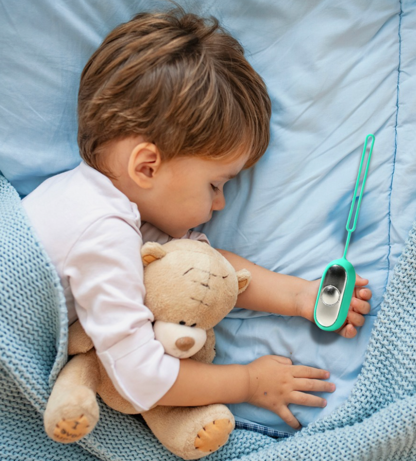 Die gezielte Stimulierung der Akupressurpunkte reduziert Stress und Ängste und bringt dein Kind in einen natürlichen Ruhezustand.