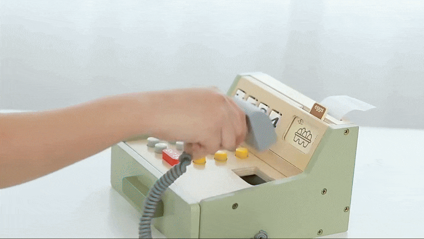 Das Holz-Kassenspielzeug bringt klassischen Rollenspielspaß ins Kinderzimmer. Mit Knöpfen, einer Schublade und Spielgeld können Kinder den Alltag eines Ladenbesitzers nachahmen, Zahlen spielerisch erfassen und sich kreativ entfalten, während sie ihre Vorstellungskraft entwickeln.