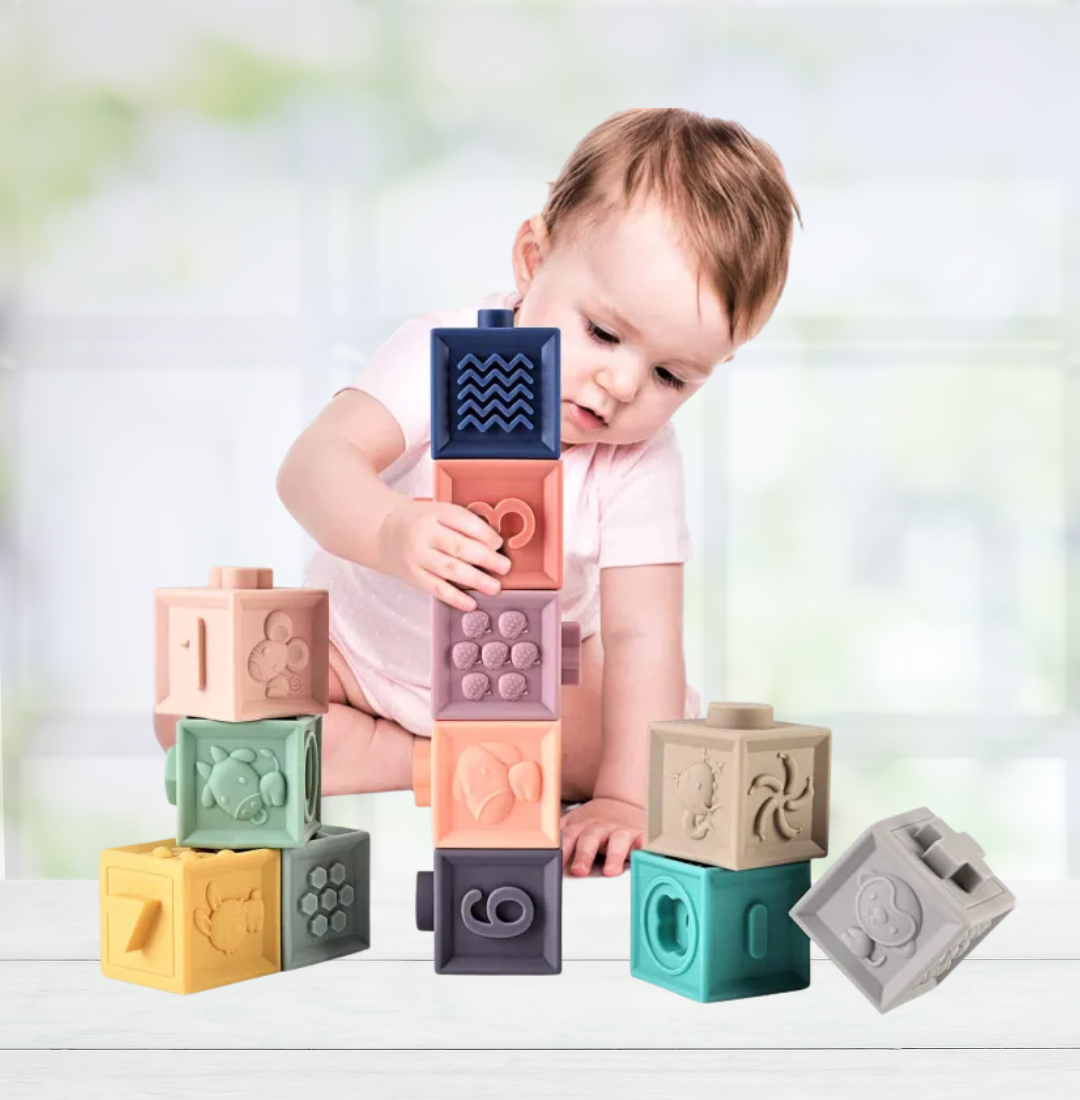 Die weichen Baby-Bausteine bieten eine perfekte Kombination aus Spielspaß und Lernförderung für Kinder. Hergestellt aus flexiblem und ungiftigem Vinyl, sind diese Montessori-inspirierten Bausteine ideal zum Greifen, Stapeln und Drücken. Sie unterstützen die Feinmotorik, das sensorische Lernen und die Hand-Auge-Koordination. Dank ihrer weichen Oberfläche sind sie auch als Badespielzeug geeignet, wodurch sie vielseitig einsetzbar sind – sowohl im Kinderzimmer als auch in der Badewanne.