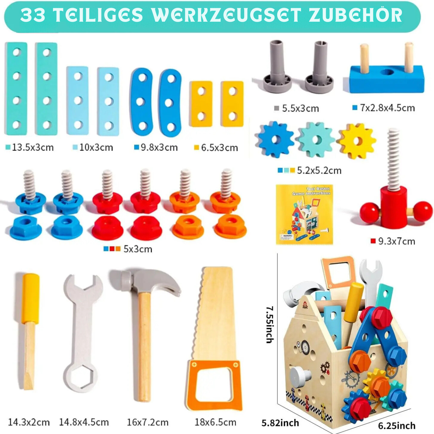 Das Set ist für Kinder ab 2 Jahren geeignet und bietet einen von Montessori inspirierten Lernansatz, bei dem Spiel und der Aufbau grundlegender Fähigkeiten miteinander verbunden werden. Ganz gleich, ob Sie ein einzigartiges Geschenk oder eine lustige Aktivität zur Förderung der frühkindlichen Entwicklung suchen, Werkzeughaus ist eine fantastische Wahl für stundenlanges interaktives Lernen und Unterhaltung.