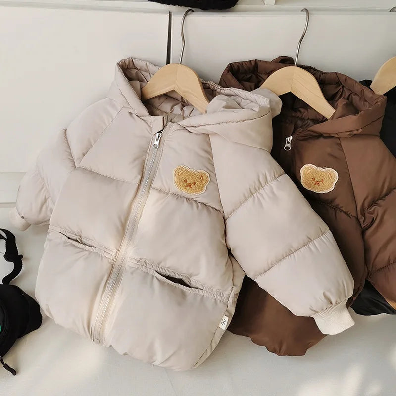 Diese Mäntel aus hochwertigen, verdickten Baumwolldaunen halten Kinder in den kälteren Monaten warm. Das leichte und dennoch isolierende Material eignet sich perfekt für den täglichen Gebrauch, während die unifarbenen Varianten problemlos zu jedem Outfit passen.