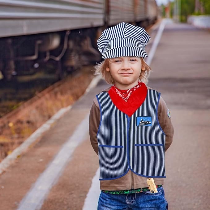 Dieses Lokführer-Kostüm ist auf Komfort und Langlebigkeit ausgelegt und sorgt für stundenlangen Spaß bei Rollenspielabenteuern. Das Set enthält alle wichtigen Requisiten wie einen Schaffnerhut und eine Weste für einen kompletten Look. Das Set eignet sich perfekt für Halloween, Kostümpartys oder für das Rollenspiel zu Hause. Es regt die Fantasie an und hilft Kindern, ihre Fähigkeiten zum Geschichtenerzählen zu entwickeln. Ein tolles Geschenk für angehende Eisenbahnliebhaber und junge Abenteurer!